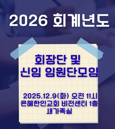 장 소: 은혜한인교회, 비전센터 1층 새가족실 총 회 장 한기홍목사